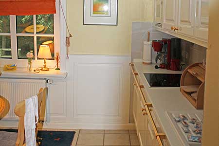 Die Wohnung verfügt über eine gehobene Ausstattung und ist liebevoll im Landhausstil eingerichtet. Sie bietet ein großzügiges Wohn-/Esszimmer mit Küchenzeile, ein Schlafzimmer und Dusche/WC. Sie verfügt zusätzlich über eine separate Außenterrasse in der Grünanlage mit Strandkorb und Gartengarnitur.